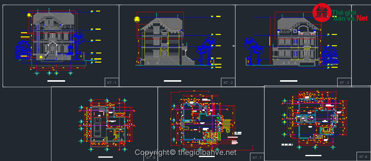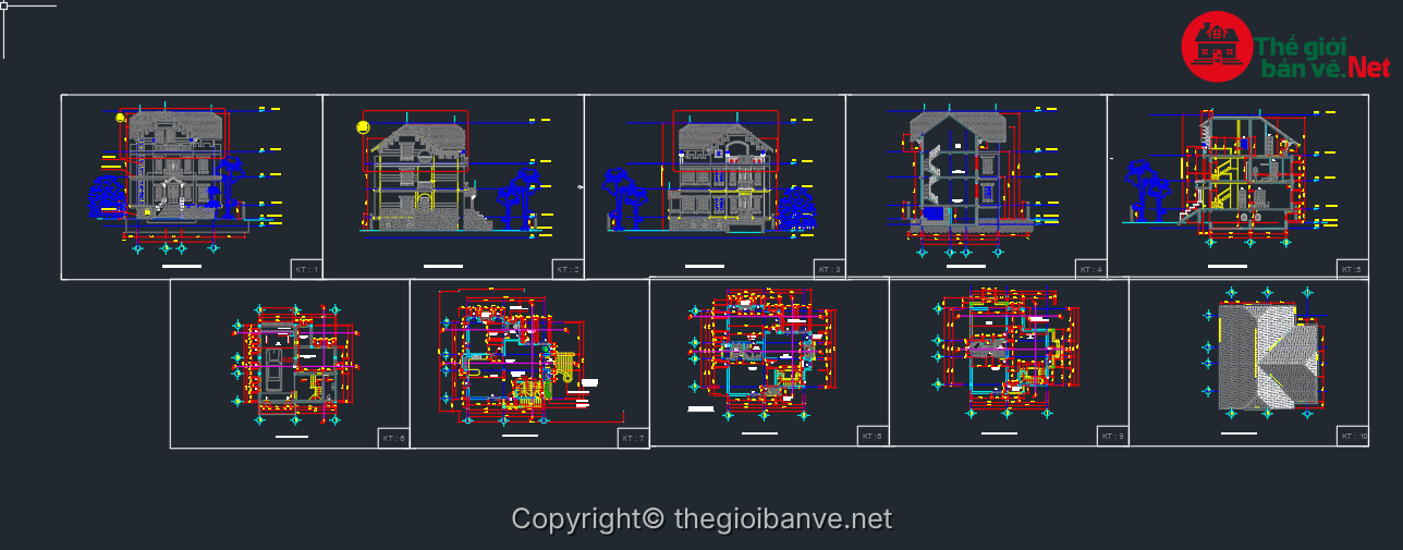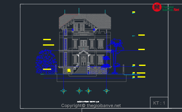 Tham khảo bản vẽ kiến trúc biết thự 2 tầng.