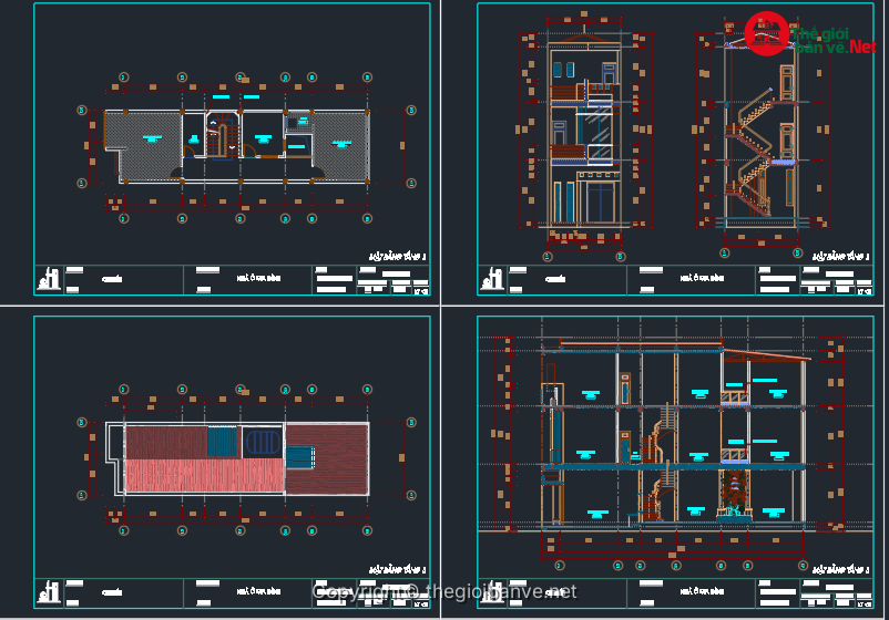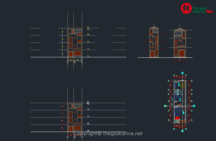 • Bản vẽ kiến trúc nhà dân dựng 3 tầng (4.9 x 16.3m) .Rất thích hợp tham khảo và học tập
