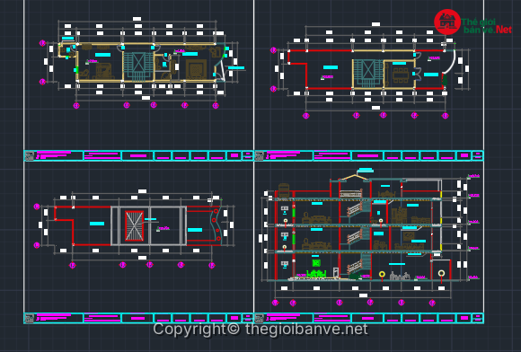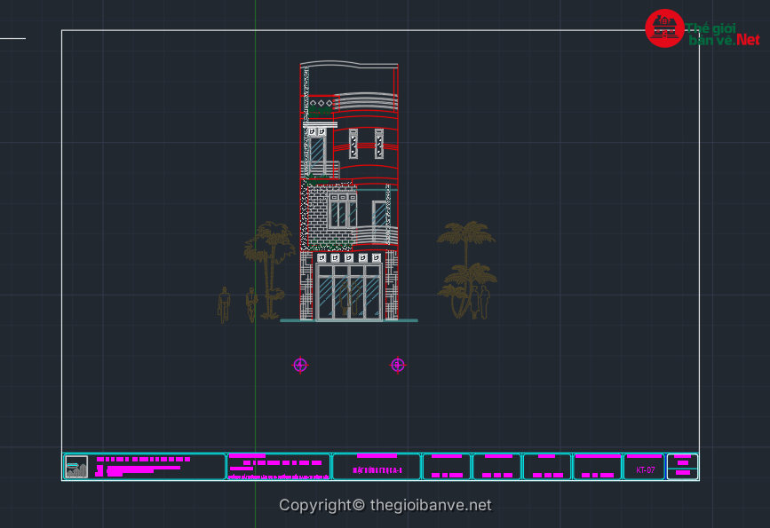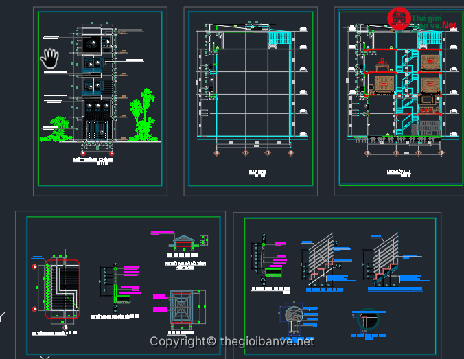 Bản vẽ kiến trúc nhà phố 4 tầng (4.2 x 25m)