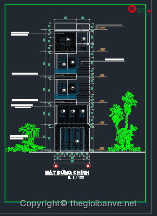 Bản vẽ kiến trúc nhà phố 5 tầng (4.3 x 10.5m) .Rất thích hợp để tham khảo và học tập