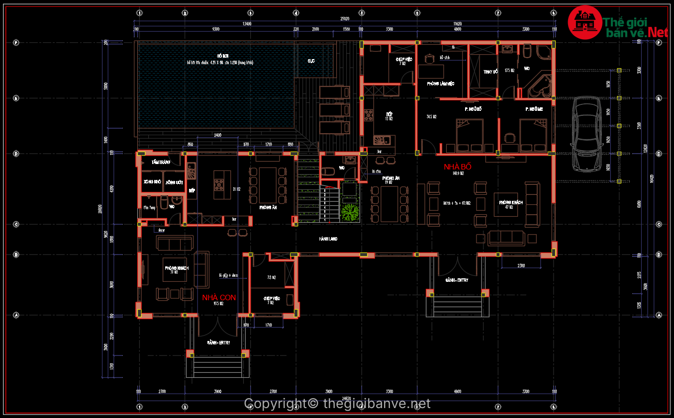 Bản vẽ thiết kế dinh thự kích thước 11.7×15.5m tại Hà Nội