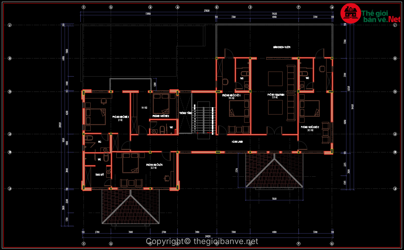 • Bản vẽ thiết kế dinh thự kích thước 11.7×15.5m tại Hà Nội