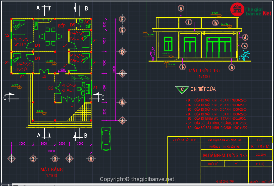 Bản Vẽ Thiết Kế Nhà Cấp 4 Kích Thước 11x14m tham khảo dành cho kỹ sư thiết kế