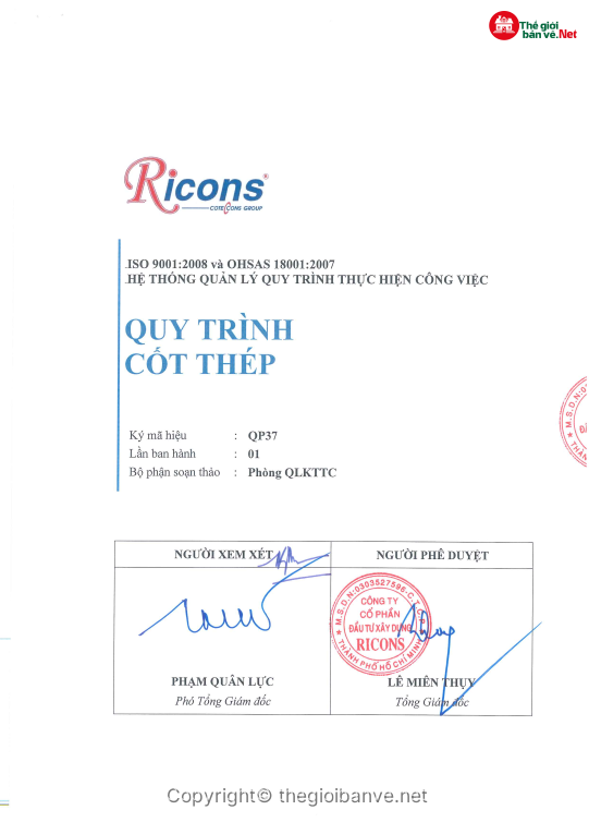Ricons - Quy trình cốt thép- Tài liệu của tổng thầu xây dựng hàng đầu Việt Nam
