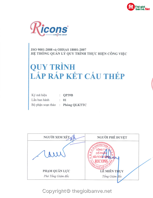 Ricons - Quy trình gia công kết cấu thép- Tài liệu của tổng thầu xây dựng hàng đầu Việt Nam