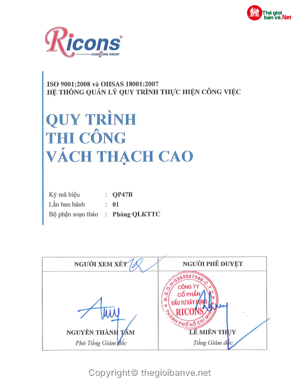 Ricons - Quy trình thi công vách thạnh cao- Tài liệu của tổng thầu xây dựng hàng đầu Việt Nam