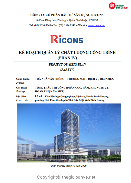 Ricons_Kế hoạc quản lý chất lượng-Kế hoạch nghiệm thu- Tài liệu của tổng thầu xây dựng hàng đầu Việt Nam