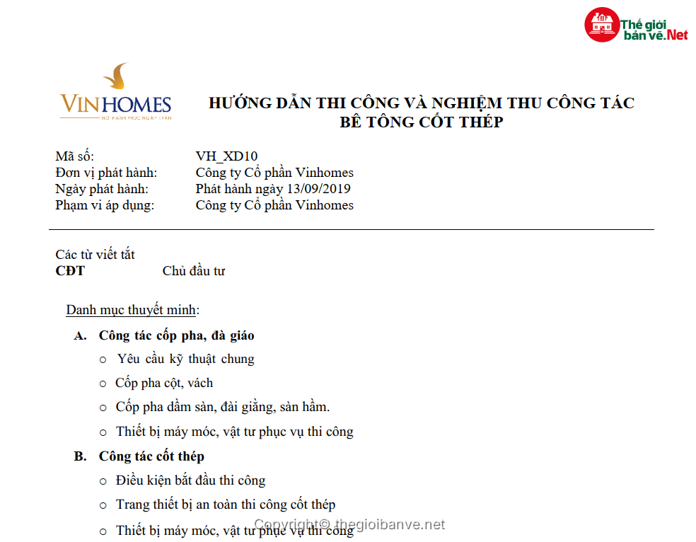 Vinhomes_Quy trình thi công và nghiệm thu bê tông cốt thép