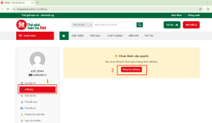 Bước 2: Chọn vào mục Affiliate và chọn vào đăng ký affiliate