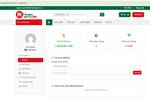 Khi được duyệt bạn vào mục Affiliate sẽ được giao diện như bên dưới và bạn có thể đi tiếp thị liên kết được rồi nha